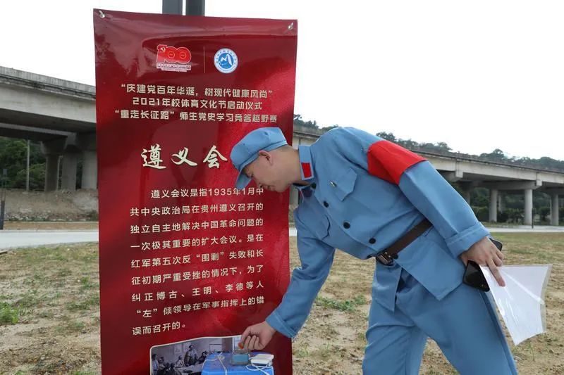 這次比賽設(shè)置了43個打卡點,其中大型的打卡點分別以“湘江”、“赤水”、“金沙江”、“瀘定橋”、“岷山”等紅軍長征中的重大歷史事件發(fā)生地貫穿,將紅色文化、紅色精神融入到越野賽的全過程,讓師生身臨其境地走進黨史,觸摸黨史。