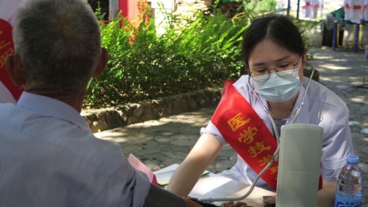 ??圖為紅色筑夢隊(duì)為村民免費(fèi)義診,提高村民健康意識。中國青年網(wǎng)通訊員 方宇 攝