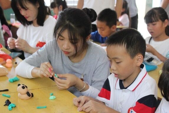 圖為紅色筑夢隊(duì)在梅營小學(xué)與小朋友們制作手工藝術(shù)品。中國青年網(wǎng)通訊員 黃佳麗 攝