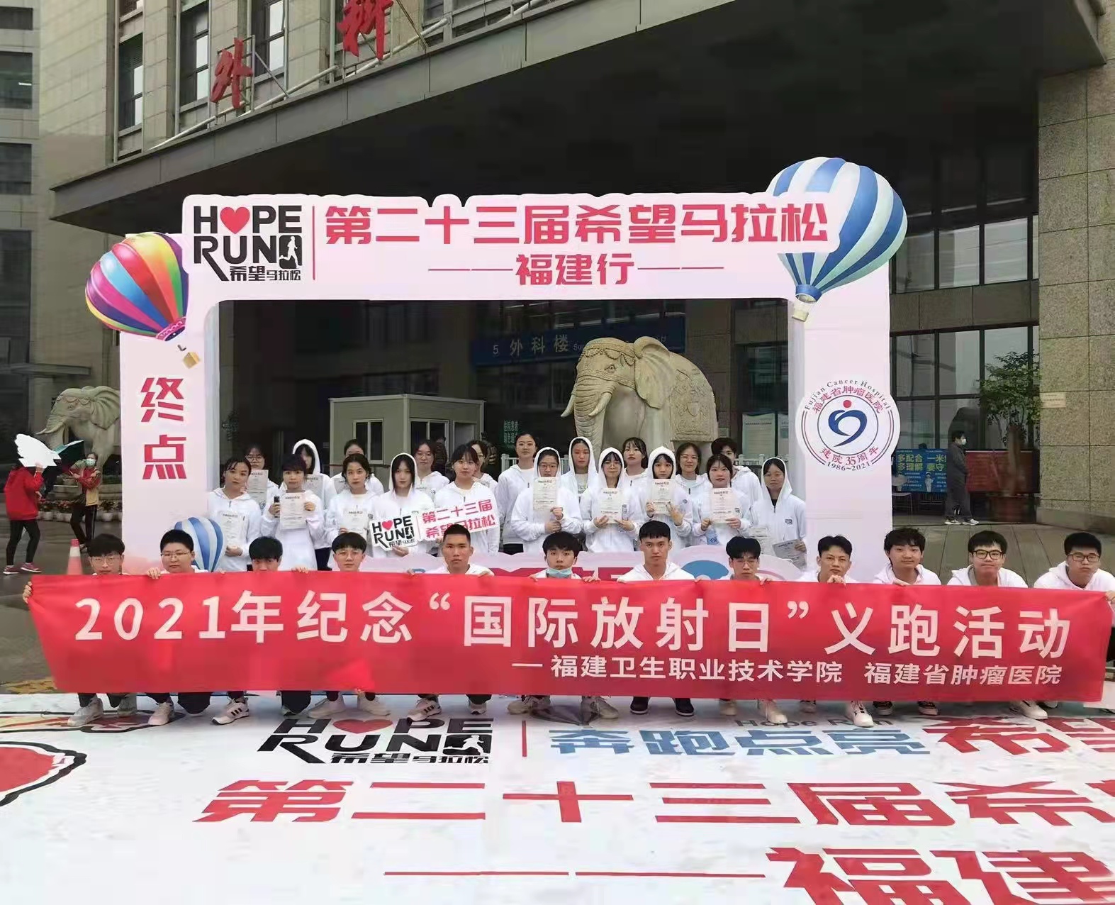 愛心義跑,點(diǎn)亮希望。11月6日,第二十三屆希望馬拉松(福建行)活動(dòng)在福建省腫瘤醫(yī)院鳴槍開跑,學(xué)校醫(yī)學(xué)技術(shù)系放療班學(xué)子同社會(huì)愛心人士一起義跑,并積極參加賽會(huì)的志愿服務(wù)工作?,F(xiàn)場(chǎng)舉行了癌癥防治宣傳和咨詢活動(dòng),學(xué)子們身穿白衣,歌唱《我和我的祖國(guó)》,呼吁社會(huì)更多關(guān)注癌癥防治事業(yè),筑夢(mèng)健康福建。
