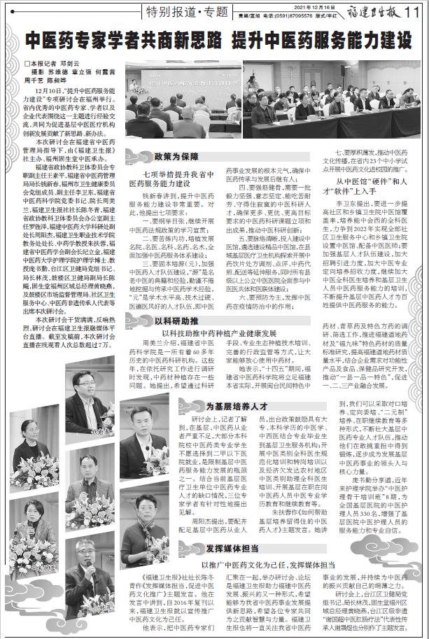 (福建衛(wèi)生報(bào) 2021年12月16日11版 鏈接:https://fjwsb.fjdaily.com/pc/con/202112/16/content_141632.html)