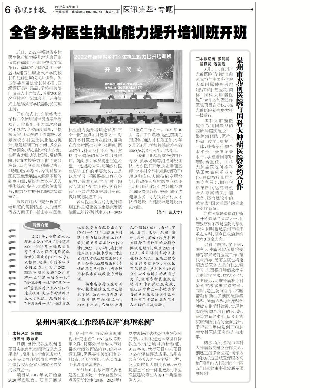 《福建衛(wèi)生報(bào)》2022年3月10日第06B版 鏈接:https://fjwsb.fjdaily.com/pc/con/202203/10/content_163756.html