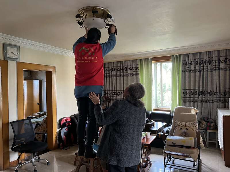 “她不僅幫我打掃衛(wèi)生,還陪我聊天?!奔易「V菔袀}山區(qū)對湖街道的詹壽珍老人,幫扶站在椅子上擦燈泡的助老員江霞梅,還不住地夸贊她。