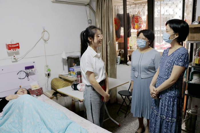 王林慧今年19歲,她的母親林細(xì)碧因患類風(fēng)濕性關(guān)節(jié)炎,長年癱瘓?jiān)诖?,生活不能自理,她的父親也因疾病一直住在醫(yī)院。因此,王林慧一直是帶著母親上學(xué)的,今年已經(jīng)是第九年了。今年7月,即將從福建衛(wèi)生職業(yè)技術(shù)學(xué)院畢業(yè)的她,目前已經(jīng)成了福建醫(yī)科大學(xué)附屬第一醫(yī)院的一名準(zhǔn)護(hù)士,每天下班趕回家后,王林慧就要馬不停地開始做飯、洗碗、拖地,然后再為媽媽翻身、按摩、喂水……“她工作已經(jīng)很辛苦了,回來還要照顧我?!蹦赣H林細(xì)碧談及此事,頗有些自責(zé)。但王林慧卻不以為意,只是綻放著笑容安慰母親,細(xì)數(shù)著大家對她們母女的幫助,表示“有媽媽的地方,就是家?!?/p>
