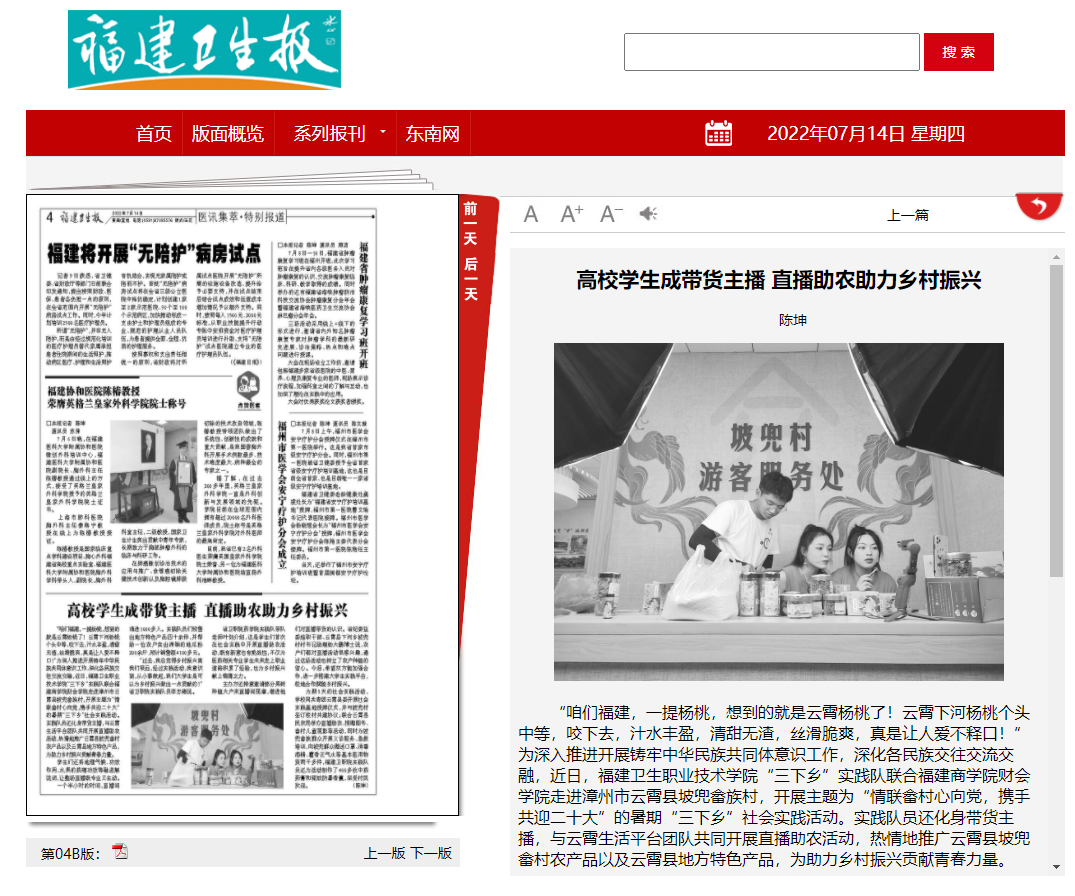 福建衛(wèi)生報(bào) 2022年7月14日 鏈接:https://fjwsb.fjdaily.com/pc/con/202207/14/content_197135.html