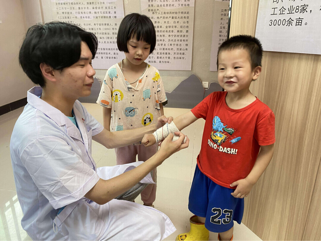 中國青年網(wǎng)寧德7月25日電(通訊員 蓋小寶)6月29日上午,為響應(yīng)暑期三下鄉(xiāng)實踐活動,福建衛(wèi)生職業(yè)技術(shù)學院“閩衛(wèi)實踐隊”小分隊在暑期社會實踐期間奔赴福建省寧德市壽寧縣下黨鄉(xiāng)開展以“喜迎二十大 永遠跟黨走 奮進新征程”為主題的社會實踐活動。今日開展了中醫(yī)推拿拔罐刮痧,測量血壓,假人心肺復蘇教學和創(chuàng)傷包扎教學以及慰問老黨員的活動。此活動旨在幫助村民了解急救知識,以及通過義診緩解村民的疲勞。