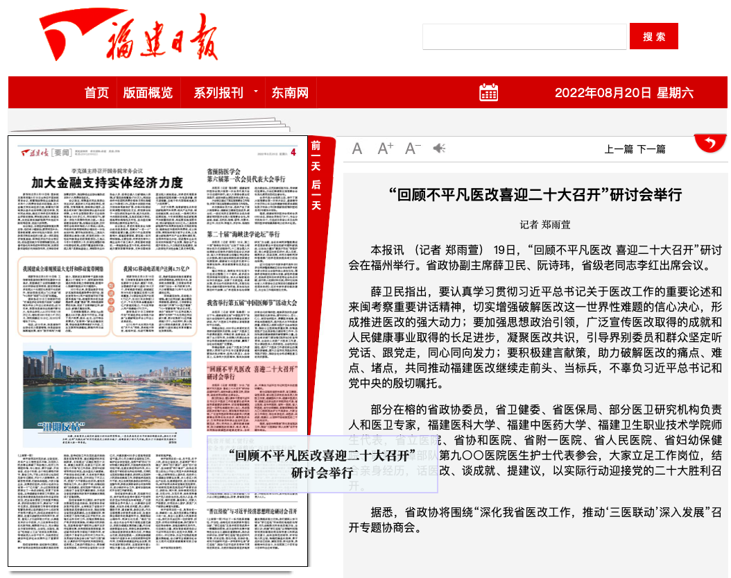 福建日?qǐng)?bào) 2022年8月20日 第04版要聞 鏈接:https://fjrb.fjdaily.com/pc/con/202208/20/content_207694.html