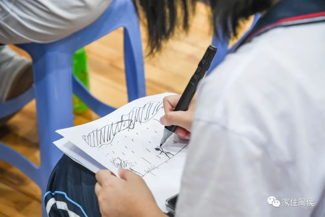 ▲(同學在紙上畫出腦海里“雨中人”的畫面)