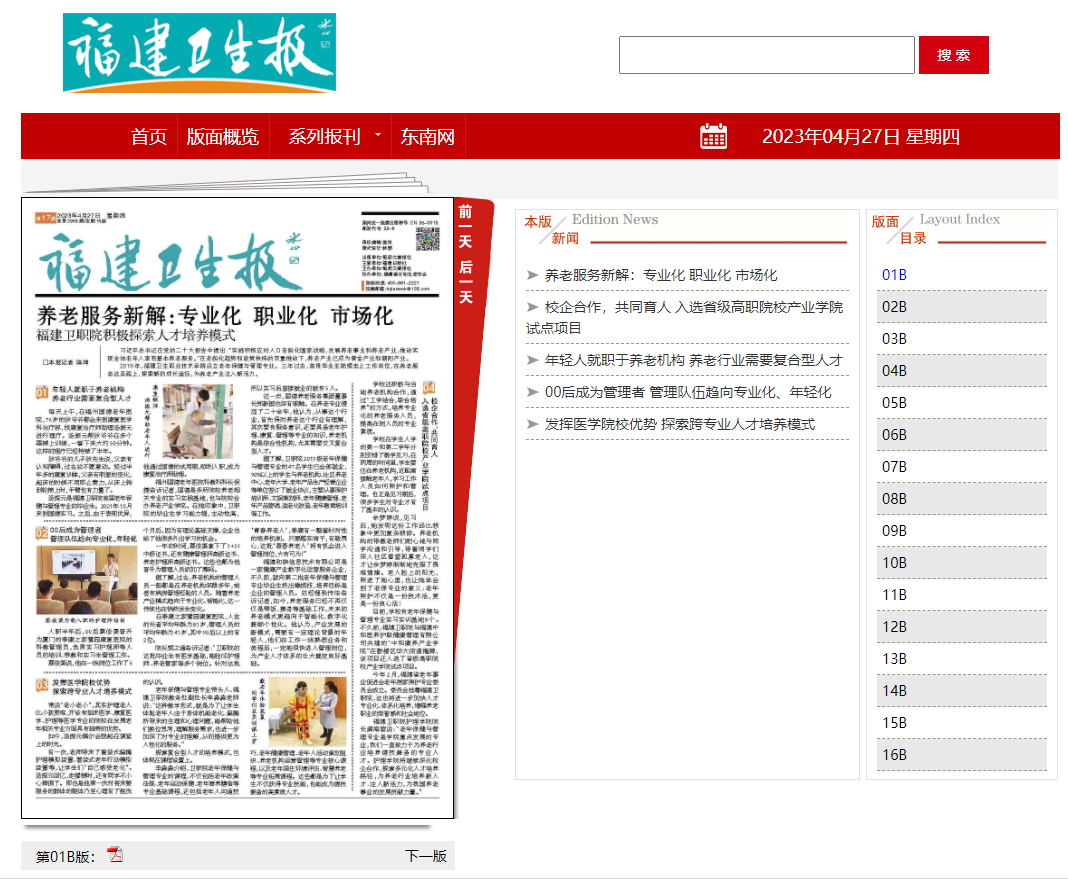 福建衛(wèi)生報(bào) 2023年4月27日 鏈接:https://fjwsb.fjdaily.com/pc/col/202304/27/node_01B.html