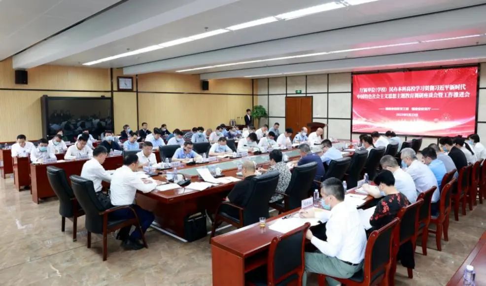 40家廳屬單位(學(xué)校)、民辦本科高校主要負(fù)責(zé)同志,委廳主題教育領(lǐng)導(dǎo)小組辦公室各工作組主要負(fù)責(zé)人等參加會(huì)議。會(huì)前,與會(huì)人員實(shí)地調(diào)研陽(yáng)光學(xué)院辦學(xué)成果展廳,了解學(xué)院的發(fā)展歷程、黨建與思政建設(shè)、專業(yè)設(shè)置及科研成果。