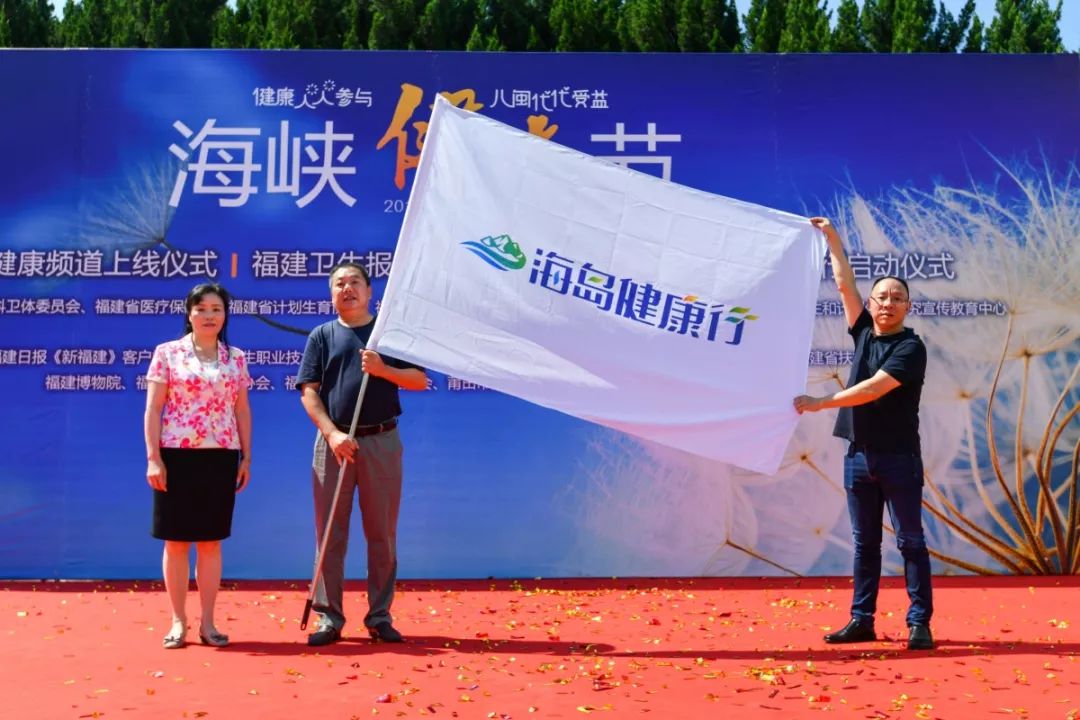(莆田秀嶼區(qū)衛(wèi)健局副局長(zhǎng)陳國(guó)富(中)接過(guò)福建省計(jì)劃生育協(xié)會(huì)項(xiàng)目工作部張晨霞部長(zhǎng)(左一)與每周文摘報(bào)社總編輯、福建衛(wèi)生報(bào)總編輯陳冬青(右一)手中的旗幟,“海島健康行”公益品牌系列活動(dòng)正式啟動(dòng) )