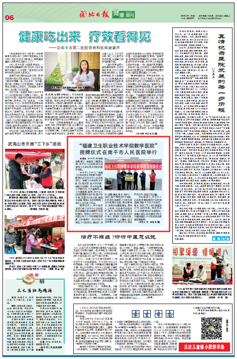 本報訊 2018年,經(jīng)福建省教育廳、福建省衛(wèi)健委批準,南平市人民醫(yī)院成為福建省衛(wèi)生職業(yè)技術(shù)學(xué)院的教學(xué)醫(yī)院。