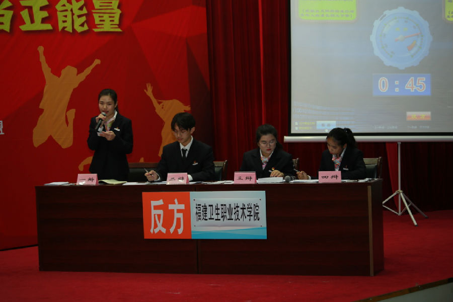12月16-17日,歷經(jīng)半個(gè)多月的準(zhǔn)備,八所高職高專(zhuān)院校再次齊聚福建衛(wèi)生職業(yè)技術(shù)學(xué)院。寒風(fēng)驟雨都難以消減參賽師生的積極與熱情?!敖裉欤惆l(fā)朋友圈了嗎?”16日的半決賽中,自廈門(mén)華天涉外職業(yè)技術(shù)學(xué)院的辯手用一個(gè)特別的問(wèn)題進(jìn)行了開(kāi)場(chǎng)展示。青年人是社交網(wǎng)絡(luò)的最活躍的群體,每天用微信、微博等聯(lián)系親友同學(xué),深受其影響,其中利弊也早已不是什么新鮮話(huà)題。所以,虛擬社交網(wǎng)絡(luò)對(duì)青年人的成長(zhǎng)是利大于弊還是弊大于利?相信你心中也自有見(jiàn)解。在半決賽較量中福建衛(wèi)生職業(yè)技術(shù)學(xué)院代表隊(duì)與福建信息職業(yè)技術(shù)學(xué)院代表對(duì)陣,福建衛(wèi)生職業(yè)技術(shù)學(xué)院代表隊(duì)辯手在強(qiáng)敵面前毫不遜色,充分展示了自身的專(zhuān)業(yè)背景和醫(yī)藥人員的淡定從容,雖然以團(tuán)體總分2分不敵對(duì)方,但是福建信息職業(yè)技術(shù)學(xué)院代表隊(duì)的二號(hào)辯手周子杰以91分的高分拿到了全場(chǎng)辯手的最高分。