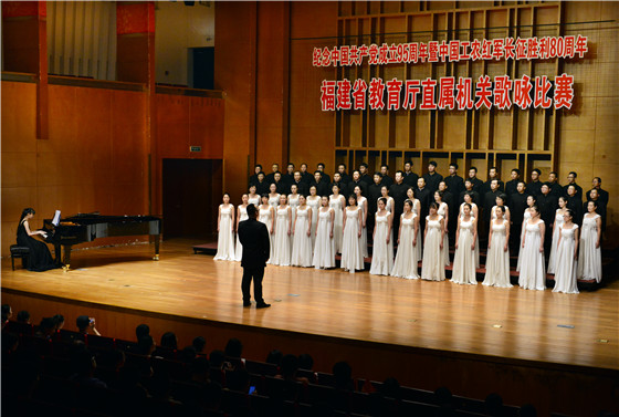 6月26日下午,省教育廳直屬機關在福建大劇院音樂廳舉行慶祝中國共產(chǎn)黨成立95周年暨中國工農(nóng)紅軍長征勝利80周年歌詠比賽。