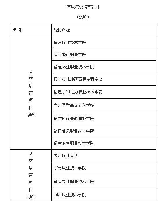 省教育廳、省財(cái)政廳日前聯(lián)合發(fā)出通知,公布示范性現(xiàn)代職業(yè)院校建設(shè)工程培育項(xiàng)目院校名單,其中福州職業(yè)技術(shù)學(xué)院等13所學(xué)校為高職院校培育項(xiàng)目校,福建理工學(xué)校等54所學(xué)校入選中等職業(yè)學(xué)校培育項(xiàng)目校。