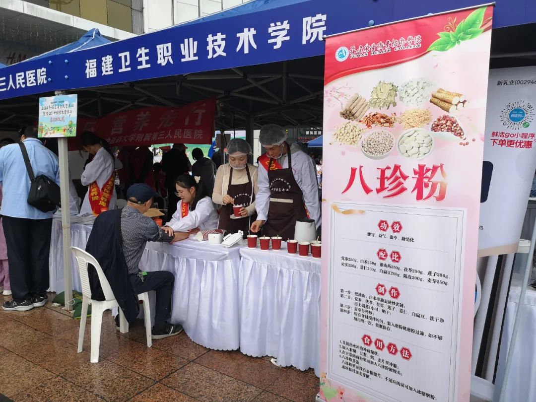 福建中醫(yī)藥大學(xué)附屬第三人民醫(yī)院帶來了自主研發(fā)的茶飲、藥膳等,以及糖尿病、腫瘤與營養(yǎng)宣傳單。