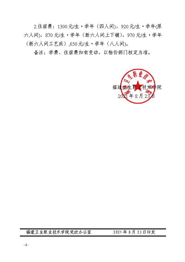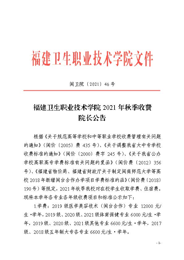 福建衛(wèi)生職業(yè)技術(shù)學(xué)院2021年秋季收費(fèi)院長(zhǎng)公告