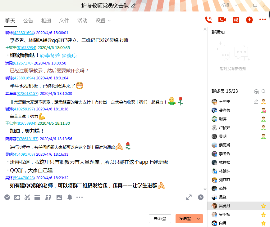 今年上半年,由于新冠疫情的影響,老師與學生均隔離在家,“護考教師黨員突擊隊”克服困難,創(chuàng)造條件,組成了七個輔導小分隊,每個小分隊由兩位黨員教師為10~11名學生進行線上輔導,通過每日線上打卡、線上答疑、直播講解等方式,為學生梳理知識重難點,督促學生及時復習,并通過隊員小比賽,互為小老師等方式激發(fā)學生的學習興趣與信心,提高學習效果,護考培訓取得階段性效果。