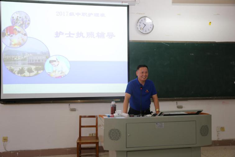 學院領導高度重視精準扶貧班學生的護考培訓,到班級與學生親切交談,為他們加油助威。學院黨委書記曾武祈用四個熱愛“熱愛生活、熱愛學習、熱愛工作、熱愛家國”激勵學生好好學習。