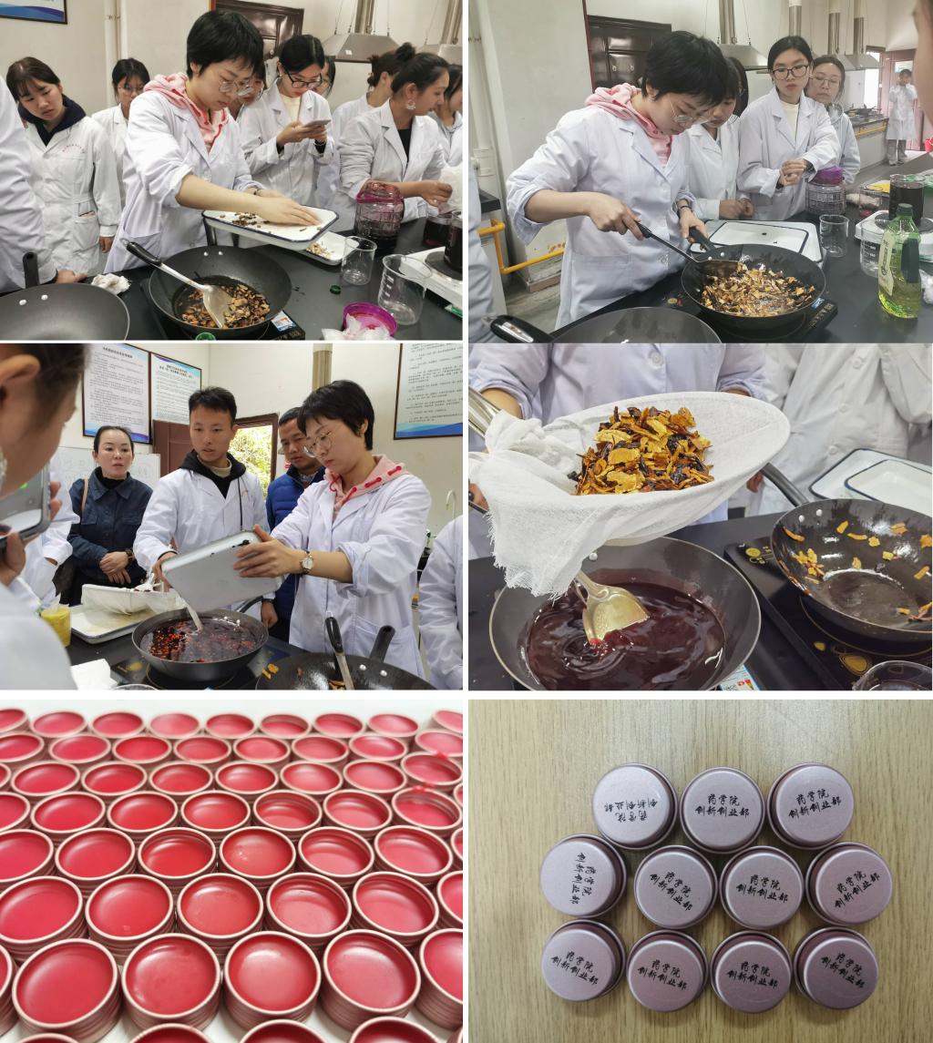 除了古法紫云膏、清潤棒棒糖外,19中藥學(xué)301班的多位同學(xué)還在教師黨員的指導(dǎo)下組織大家制作了各種特色中藥產(chǎn)品:王小佳、廖敏歡領(lǐng)隊(duì)制作了十全大補(bǔ)膏;陳劍輝、林少文領(lǐng)隊(duì)制作了精致藥香包;蔡裕華、潘焯彬領(lǐng)隊(duì)制作了生津雙根飲、紅豆餅、山藥糕,連續(xù)幾天,藥學(xué)院學(xué)子們徜徉在中藥文化的海洋中,對中華優(yōu)秀的本草文化自信滿滿。