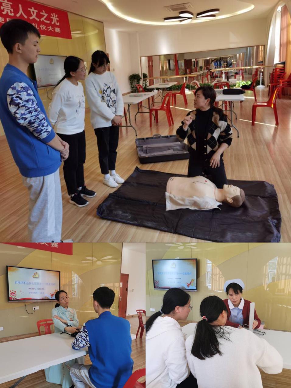 志愿服務(wù)活動前培訓(xùn):護理實訓(xùn)室中,老師們正在細致的培訓(xùn)輔導(dǎo)。測血壓前后的各種注意要點,心肺復(fù)蘇時的重點步驟,人文關(guān)懷要如何進行……