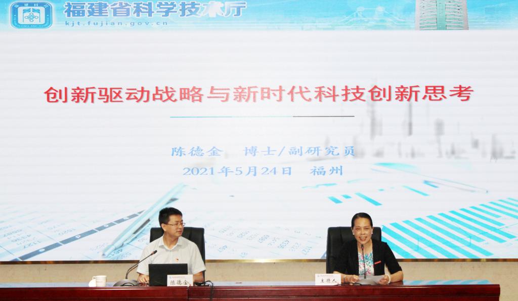 圍繞本次科技活動(dòng)周主題“百年回望:中國(guó)共產(chǎn)黨領(lǐng)導(dǎo)科技發(fā)展”,特邀福建省科技發(fā)展研究中心副主任陳德金博士做題為《創(chuàng)新驅(qū)動(dòng)戰(zhàn)略與新時(shí)代科技創(chuàng)新思考》的主題報(bào)告。陳博士詳細(xì)介紹了近年來(lái)在黨的領(lǐng)導(dǎo)下我國(guó)所取得的科技創(chuàng)新成效,并從國(guó)家創(chuàng)新驅(qū)動(dòng)戰(zhàn)略實(shí)施、國(guó)家創(chuàng)新體系構(gòu)建、中美科技創(chuàng)新競(jìng)爭(zhēng)和未來(lái)科技創(chuàng)新發(fā)展的思考等四個(gè)方面闡釋了科技創(chuàng)新的重要性,歸納總結(jié)我國(guó)在科技創(chuàng)新方面的各項(xiàng)政策及舉措,展望未來(lái)科技創(chuàng)新發(fā)展的趨勢(shì)。