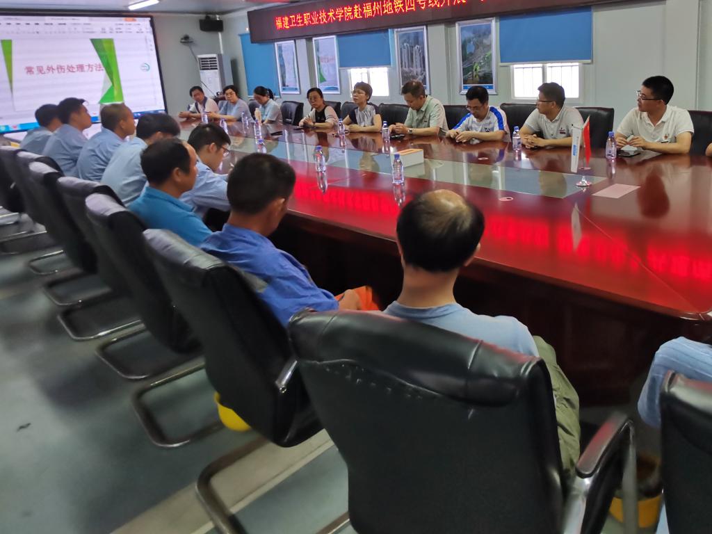 參觀結束后,藥學院第二黨支部全體黨員、中建海峽四號線工程項目黨支部全體黨員及技術骨干齊聚項目部會議室,聆聽藥學院副院長李泳寧同志和藥理教研室主任潘雪豐同志帶來的健康知識小講座。