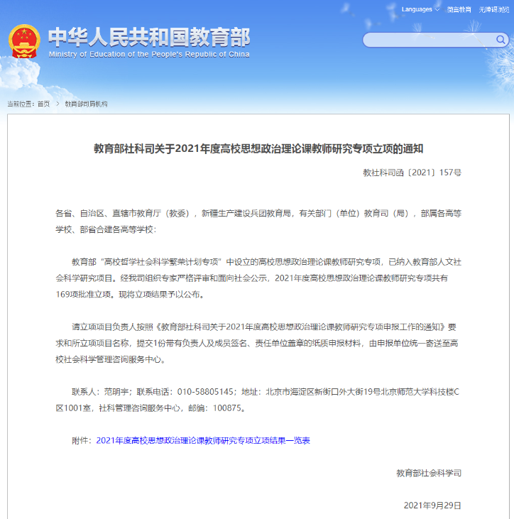 近日,2021年度教育部高校思想政治理論課教師研究專項(xiàng)立項(xiàng)結(jié)果公布,經(jīng)教育部社科司組織專家嚴(yán)格評審和面向社會(huì)公示,我校馬克思主義學(xué)院楊盈老師主持的課題“新時(shí)代勞動(dòng)教育融入高職院校思政課實(shí)踐教學(xué)路徑研究”獲批立項(xiàng)。