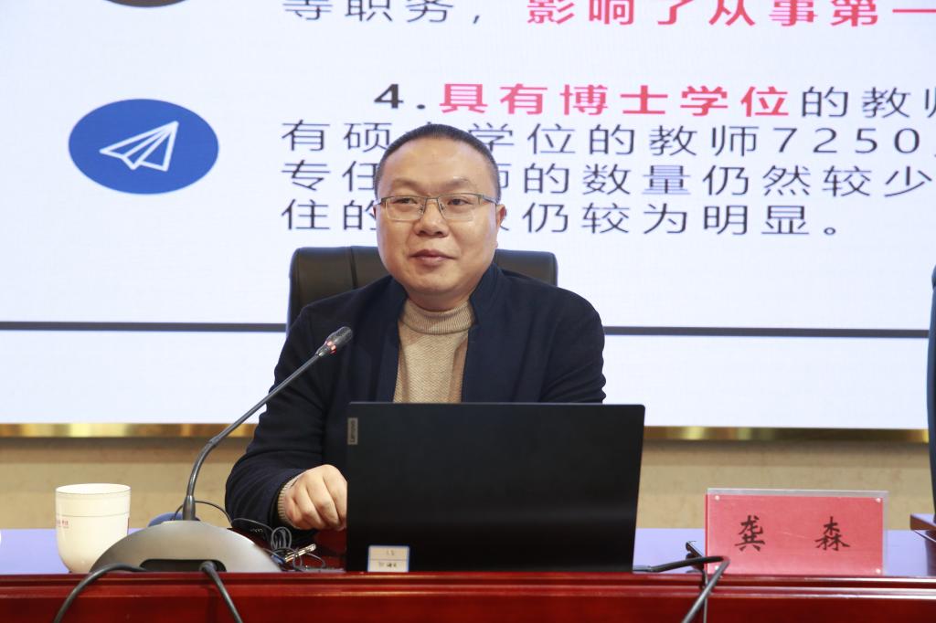 為提升我校高等職業(yè)教育師資隊(duì)伍建設(shè), 1月14日下午,我校邀請(qǐng)福建省職業(yè)技術(shù)教育中心主任龔森在實(shí)訓(xùn)樓4樓報(bào)告廳開展題為《職業(yè)教育教師教學(xué)發(fā)展若干思考》的講座。講座由教務(wù)處副處長(zhǎng)何舒瀾主持,各二級(jí)院(系、部)主任、分管教學(xué)副主任、專業(yè)帶頭人、教研室主任、各教學(xué)團(tuán)隊(duì)骨干成員及骨干教師代表共182人參加講座。
