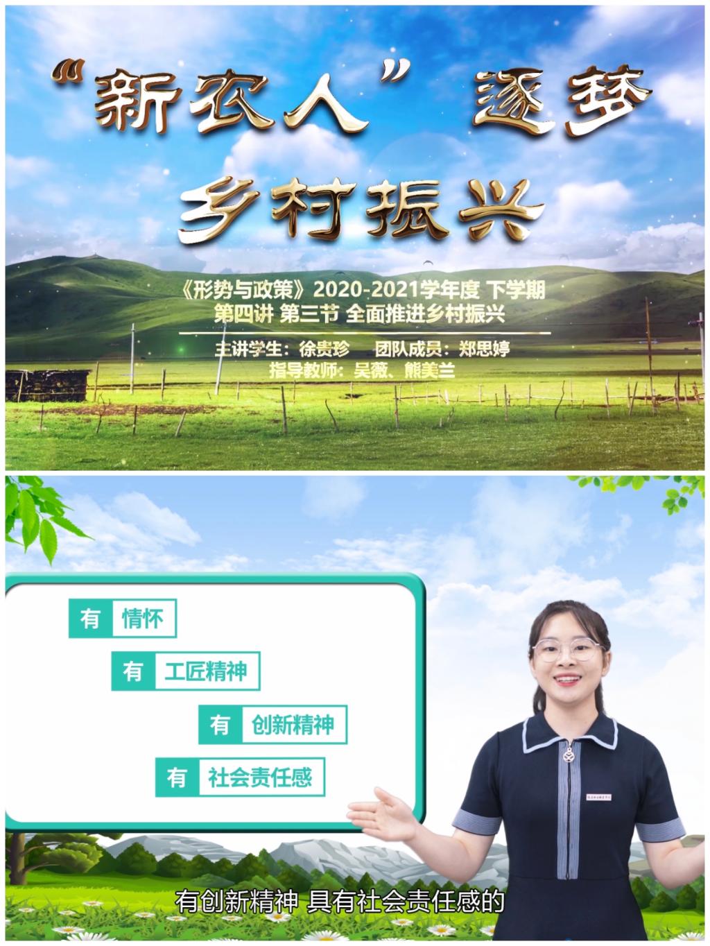 徐貴珍、鄭思婷同學的參賽作品《“新農人”逐夢鄉(xiāng)村振興》(指導老師:吳薇、熊美蘭),榮獲“百年輝煌路·奮斗正當時”第五屆全省高校大學生講思政課公開課展示活動優(yōu)秀獎。