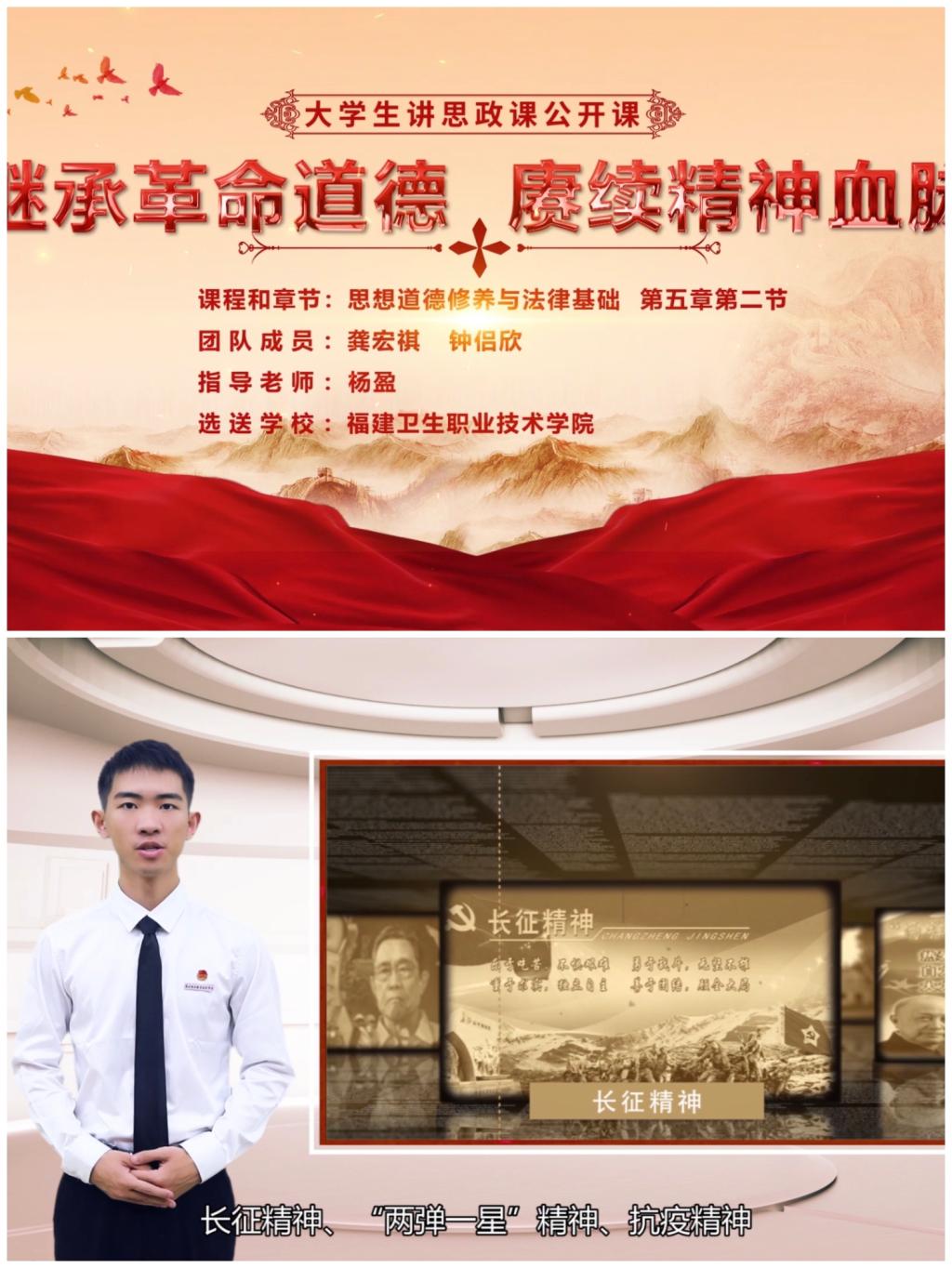 龔宏祺、鐘侶欣同學的參賽作品《繼承革命道德,賡續(xù)精神血脈》(指導老師:楊盈、熊美蘭),榮獲“百年輝煌路·奮斗正當時”第五屆全省高校大學生講思政課公開課展示活動三等獎。