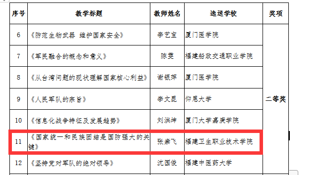 近日,福建省教育廳公布2021年福建省軍事課教師微課教學(xué)視頻競(jìng)賽獲獎(jiǎng)名單。我校馬克思主義學(xué)院就業(yè)指導(dǎo)和軍事理論教研室張崇飛、楊央兩位老師的參賽作品脫穎而出,分別獲得高校組二等獎(jiǎng)、三等獎(jiǎng)。