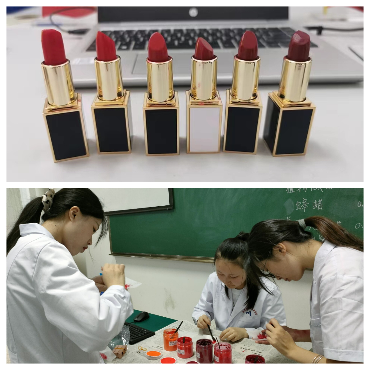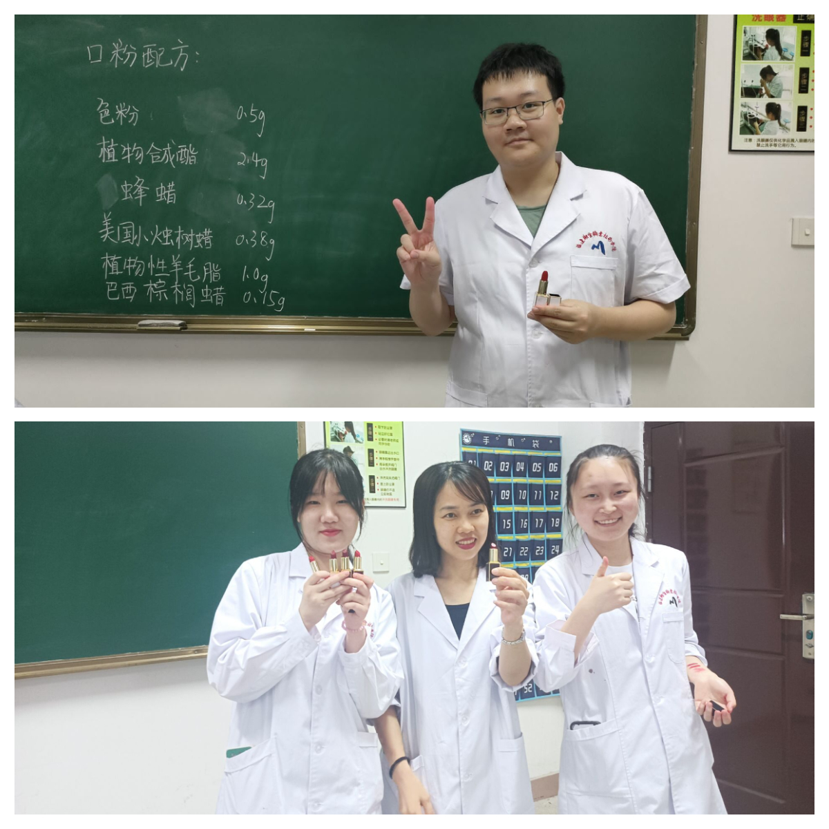 活動(dòng)中,支部黨員、藥劑教研室主任張麗華結(jié)合專業(yè)特點(diǎn),為學(xué)生介紹了制作口紅所需的各種材料,以及口紅的制作步驟。聽(tīng)完講解,學(xué)生們躍躍欲試,迫不及待地將理論投入實(shí)踐中,現(xiàn)場(chǎng)氣氛活躍。經(jīng)過(guò)老師的悉心指導(dǎo)和學(xué)生的細(xì)致操作,一支支各種色號(hào)的專屬定制口紅“新鮮出爐”。