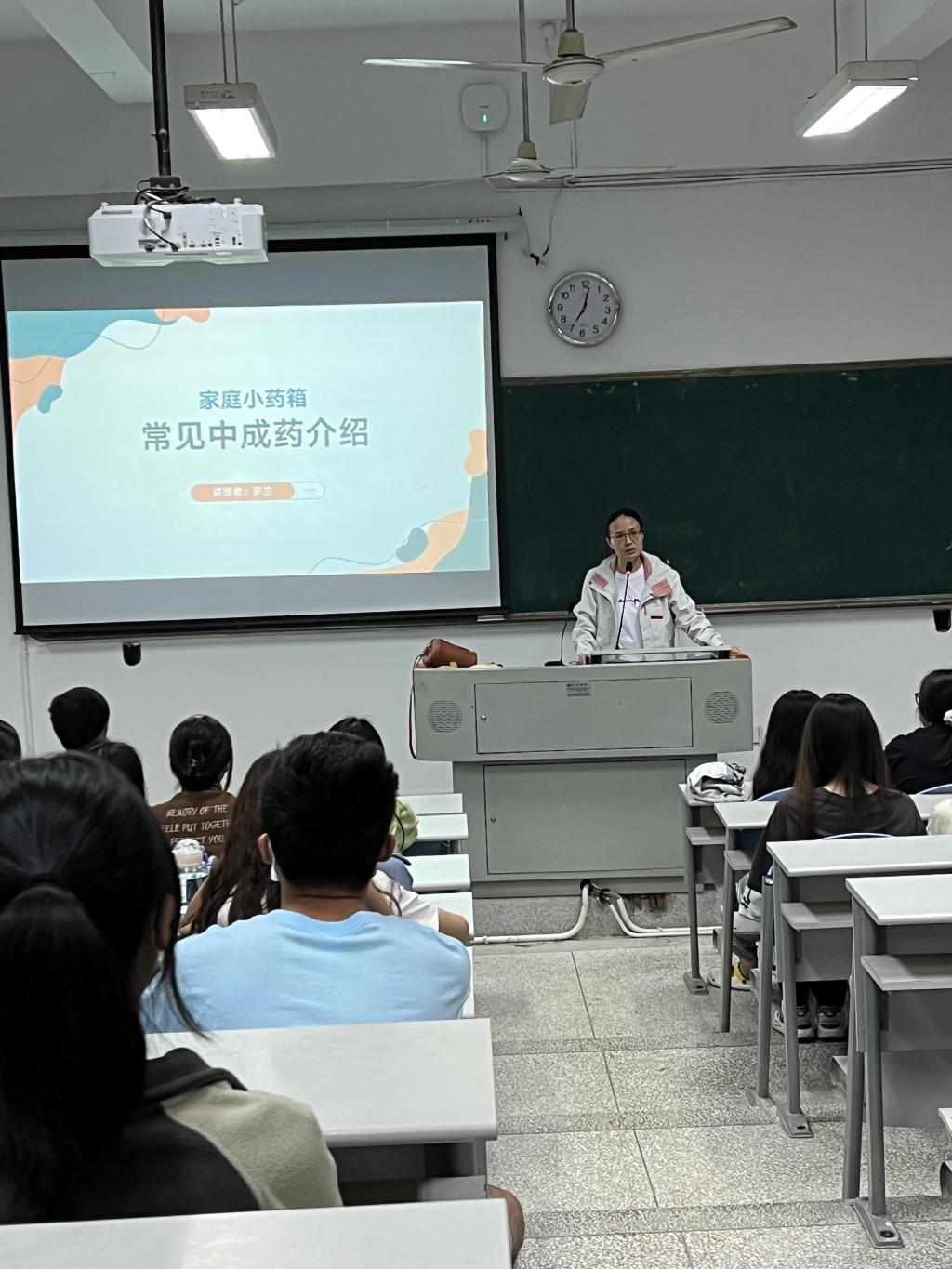 家庭小藥箱是現(xiàn)代家庭中居家必備的生活用品之一,為弘揚(yáng)中藥傳統(tǒng)文化,加強(qiáng)廣大學(xué)生的健康意識(shí),藥學(xué)院第一黨支部書(shū)記、中藥學(xué)專業(yè)帶頭人羅蘭舉辦題為《家庭小藥箱——常見(jiàn)中成藥介紹》的講座,從中醫(yī)辨證施治的角度,給在座的學(xué)生講解了針對(duì)感冒、咳嗽的常用中成藥,幫助學(xué)生更好地應(yīng)對(duì)常見(jiàn)疾病,進(jìn)一步了解將來(lái)從事的專業(yè)崗位。