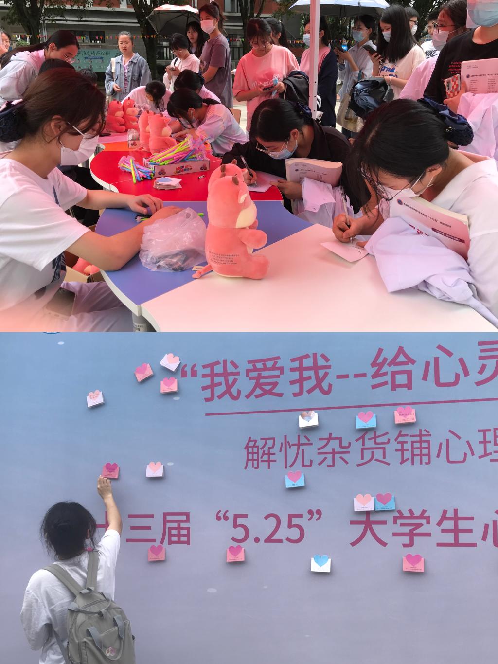 在“解憂雜貨鋪”心理宣泄活動現(xiàn)場,同學(xué)們通過一張張小小的賀卡找尋屬于自己的知心朋友和一條合理解決煩惱、減輕壓力的道路,利用這暖心的宣泄平臺,以合理、和諧的方式釋放心中的“負能量”,放松身心狀態(tài)。