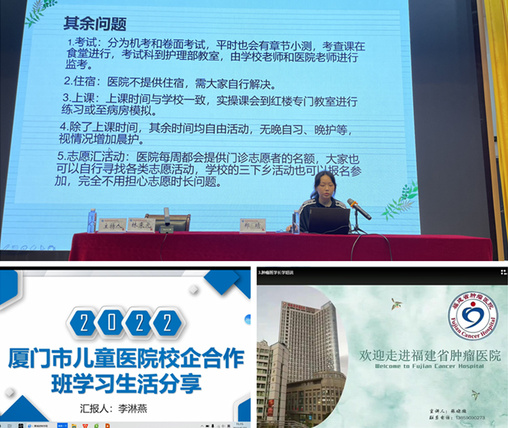 為進一步加強校企合作,更好地培養(yǎng)高素質(zhì)技術(shù)技能人才,5月26日,護理學(xué)院聯(lián)合福建省立醫(yī)院、廈門市兒童醫(yī)院在學(xué)術(shù)報告廳舉辦校企合作班宣講會。福建省立醫(yī)院護理部副主任金爽、廈門市兒童醫(yī)院紀(jì)委書記楊暉、護理學(xué)院黨政領(lǐng)導(dǎo)班子、院辦公室負(fù)責(zé)人、2021級輔導(dǎo)員以及2021級護理專業(yè)全體學(xué)生參加宣講會。