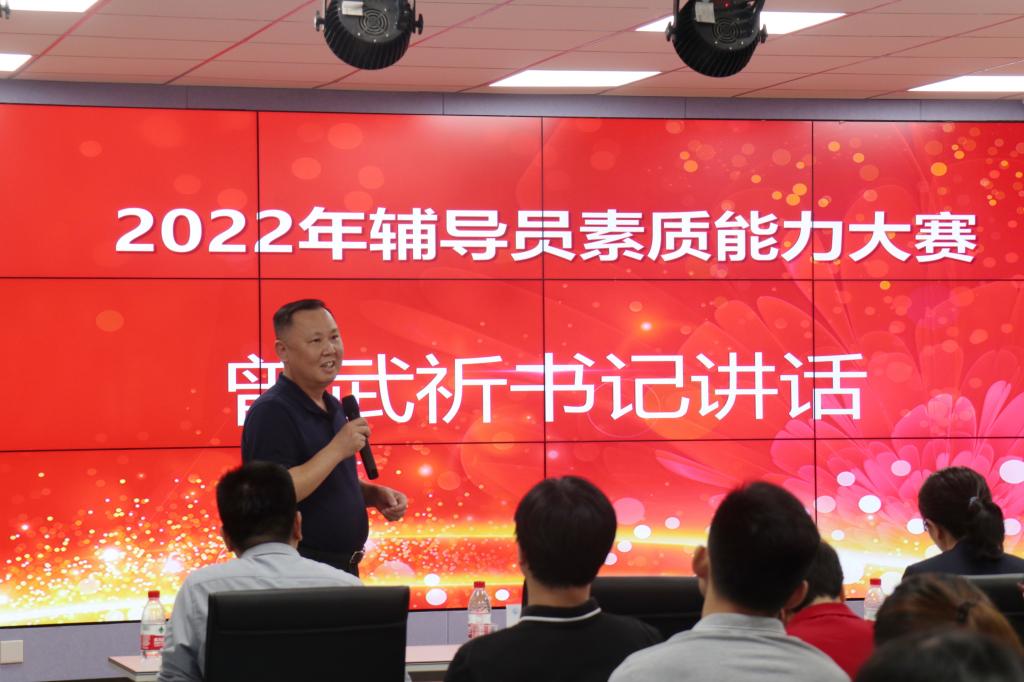 大賽最后,曾武祈向獲獎選手們表示衷心的祝賀和肯定,對與會評委精彩、精辟、精準(zhǔn)的點評表示感謝。他強調(diào),輔導(dǎo)員隊伍是思政工作的排頭兵和主力軍,使命光榮同時責(zé)任重大,輔導(dǎo)員素質(zhì)能力大賽是輔導(dǎo)員工作風(fēng)采的集中展示和對這支隊伍全方位的考核。他希望賽事越辦越好,選手們能走出校園,走上省賽、國賽的更大舞臺。他向?qū)W生管理和輔導(dǎo)員隊伍提出三點殷切期望:一要提升政治素養(yǎng),加強理論學(xué)習(xí),為黨育人為國育才,做學(xué)生成長成才的指導(dǎo)者和引路人;二要練就過硬本領(lǐng),做到能承天接地,理論思想能入腦入心,踐行于工作實際,搭建好與學(xué)生間的橋梁,營造風(fēng)清氣正的良好氛圍;三要通過舉辦比賽推進(jìn)工作,推動隊伍建設(shè),總結(jié)經(jīng)驗,檢驗工作。