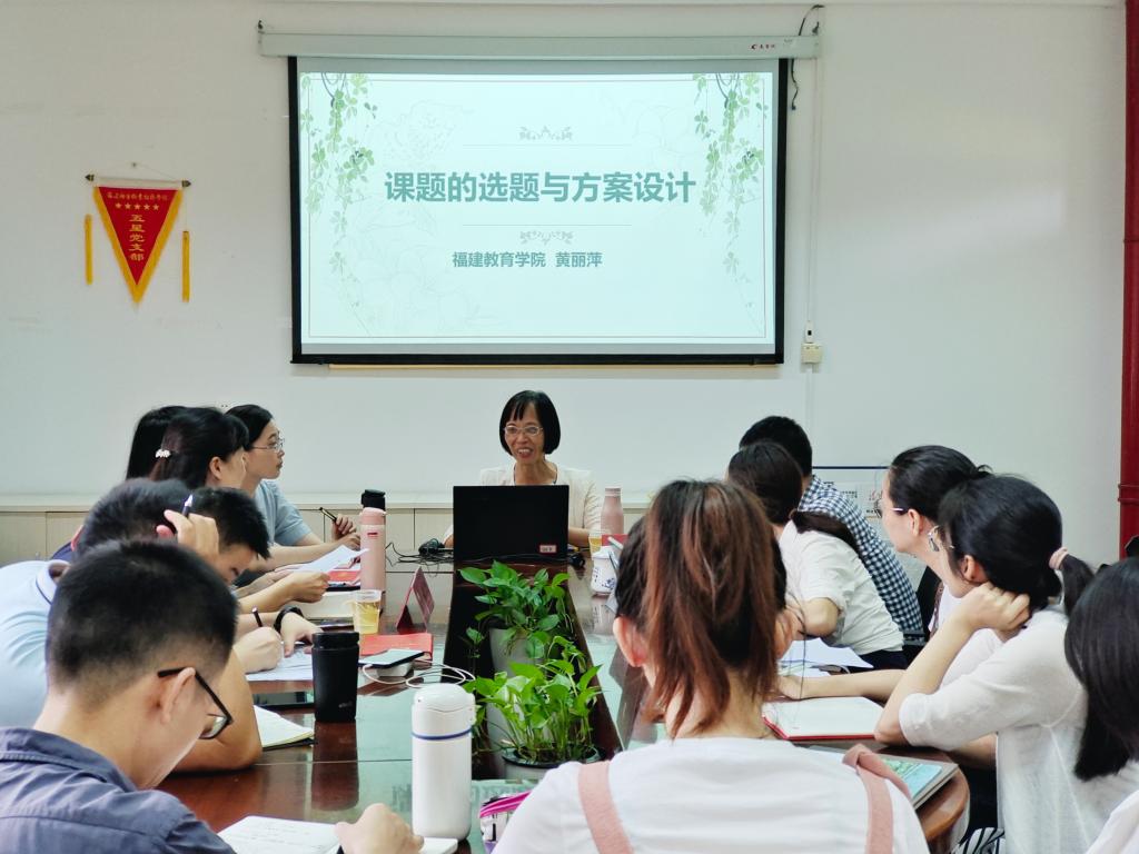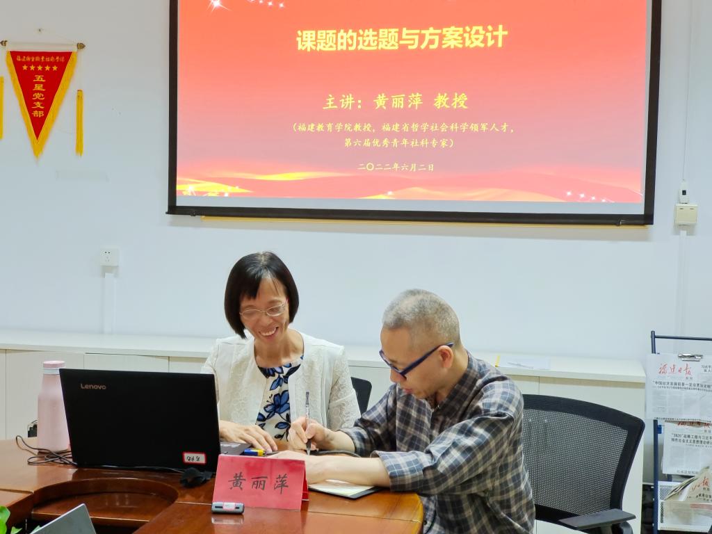 為全面提升我校思政課教師科研項目申報質(zhì)量,有效推進(jìn)課題研究工作,促進(jìn)教師專業(yè)化成長。2022年6月2日,我校馬克思主義學(xué)院邀請福建省哲學(xué)社會科學(xué)領(lǐng)軍人才、福建教育學(xué)院黃麗萍教授為全體專兼職思政課教師作《課題的選題與方案設(shè)計》專題講座。講座由馬克思主義學(xué)院副院長來朋珍主持。