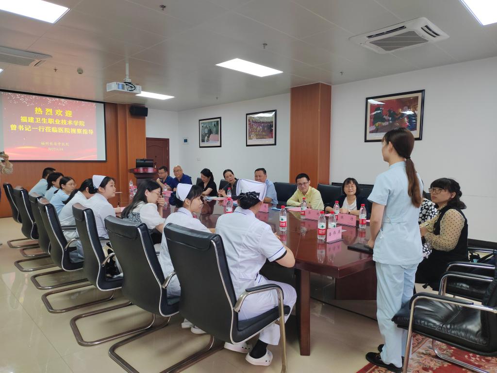 在福州長(zhǎng)安中醫(yī)院,院長(zhǎng)陳曉剛從醫(yī)院成立初心、發(fā)展現(xiàn)狀、擅長(zhǎng)領(lǐng)域、特色診療到服務(wù)團(tuán)隊(duì),全方位介紹了醫(yī)院發(fā)展的基本情況,并通過生動(dòng)形象的“三張名片”,展示了良好的醫(yī)院文化。他對(duì)我校已在醫(yī)院就業(yè)的30多位畢業(yè)生表示高度贊賞,并表示,醫(yī)院會(huì)繼續(xù)吸納我校優(yōu)秀人才,尤其是康復(fù)治療技術(shù)專業(yè)的畢業(yè)生,與我校開展全方位的合作。