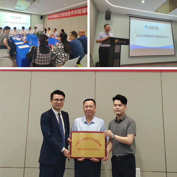 在叢尚口腔門診的座談會(huì)上,該企業(yè)陸煜昭院長(zhǎng)簡(jiǎn)要介紹了企業(yè)的組織架構(gòu)和經(jīng)營(yíng)情況,并對(duì)叢尚口腔臨床培訓(xùn)基地建設(shè)規(guī)劃做了詳細(xì)介紹,表示出了高度的合作意愿,期待有更多我校優(yōu)秀學(xué)生加入到企業(yè)中來。曾武祈從學(xué)校歷史沿革、辦學(xué)規(guī)模、學(xué)科建設(shè)等方面介紹了學(xué)校的基本情況,并對(duì)企業(yè)所做的口腔臨床培訓(xùn)基地建設(shè)規(guī)劃表示充分肯定。希望以校企合作為契機(jī),進(jìn)一步加強(qiáng)雙方在人才培養(yǎng)方面的合作,提升人才培養(yǎng)質(zhì)量,滿足畢業(yè)生高質(zhì)量就業(yè)的迫切需求。座談會(huì)后,曾武祈為企業(yè)授牌,在開展暑期社會(huì)實(shí)踐方面達(dá)成初步合作。