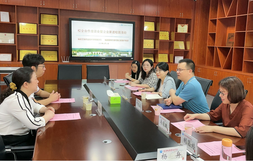 為深入貫徹落實全國職業(yè)教育大會精神和新《職業(yè)教育法》,深化產(chǎn)教融合、校企合作,實現(xiàn)優(yōu)勢互補、資源共享、合作發(fā)展,6月15日,醫(yī)學院聯(lián)合福建晶特爾美可普口腔醫(yī)療集團在實訓樓會議室開展校企合作座談會暨企業(yè)家進校園活動。福建晶特爾美可普口腔醫(yī)療集團護理部主任顏玲珠、人力資源總監(jiān)張偉,我校護理學院副院長王憲寧、醫(yī)學院副院長鄧元榮、口腔醫(yī)學專業(yè)帶頭人馬清璇、口腔醫(yī)學專業(yè)教師參加會議。