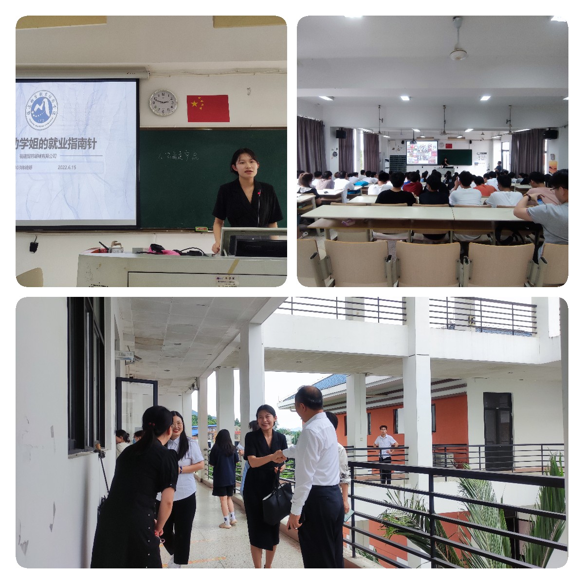 福建國藥器械有限公司本次招聘代表是公司副董事長助理、我校醫(yī)學(xué)影像技術(shù)專業(yè)畢業(yè)生林詩婷。應(yīng)醫(yī)學(xué)技術(shù)系邀請,林詩婷不僅介紹了公司情況和招聘崗位需求,還分享交流了自身在校的學(xué)習(xí)、實習(xí)、求職感悟及職場工作經(jīng)驗,為學(xué)弟學(xué)妹們送上一份誠意滿滿的“就業(yè)指南針”。許能鋒同林詩婷親切交流,歡迎優(yōu)秀校友返校招聘,為學(xué)弟學(xué)妹引路職場,同時表示希望更多的校友們能積極牽線搭建就業(yè)平臺,助力母校就業(yè)工作。
