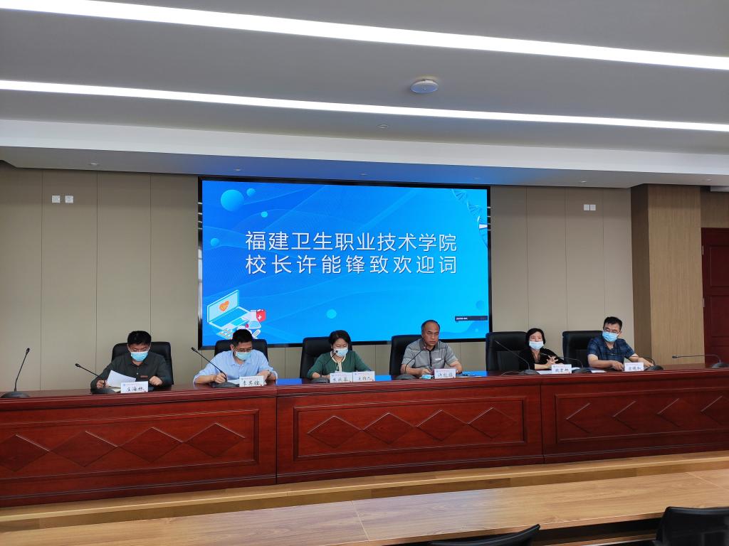 由于疫情原因,會(huì)議采取線上線下相結(jié)合的方式,主會(huì)場設(shè)在我校行政樓六樓會(huì)議室,校外參會(huì)人員以線上方式同步參會(huì)。福建省醫(yī)藥衛(wèi)生行業(yè)職業(yè)教育指導(dǎo)委員會(huì)常務(wù)副主任、校長許能鋒出席會(huì)議,教務(wù)處負(fù)責(zé)人魏碧娜、現(xiàn)代教育技術(shù)中心主任李其鏗、醫(yī)學(xué)技術(shù)系主任翁繩和、健康管理系主任莊海林、藥學(xué)院副院長李泳寧,以及本批各教材的主編、副主編及編寫人員共100余人參會(huì)。會(huì)議由副校長朱扶蓉主持。