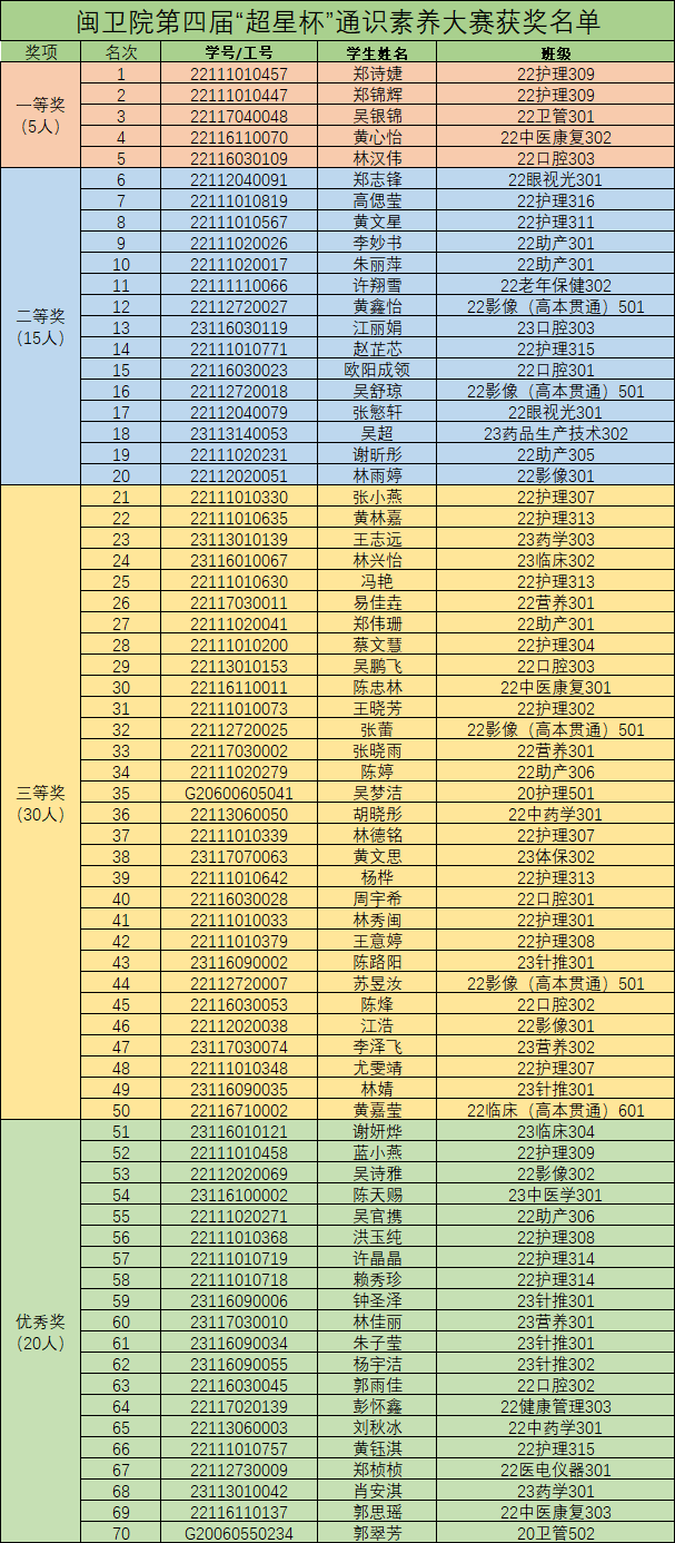 閩衛(wèi)院第四屆“超星杯”通識素養(yǎng)大賽獲獎名單