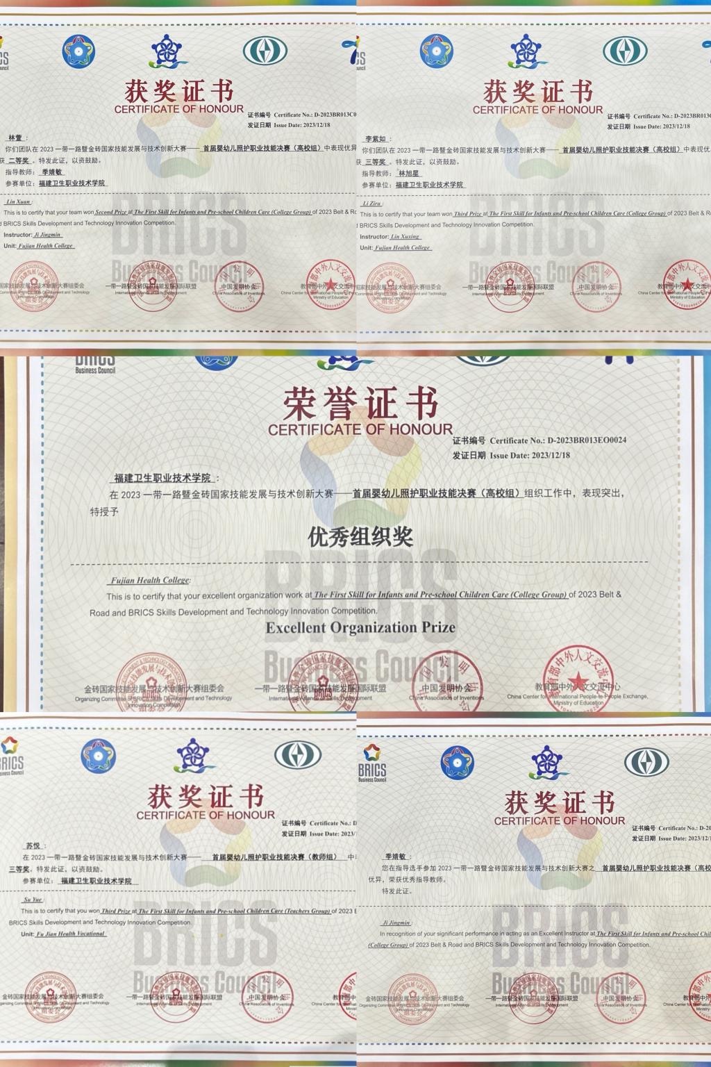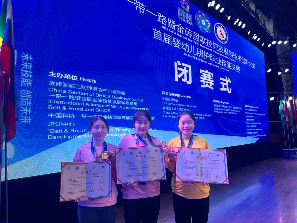 2023年12月14日至18日,2023一帶一路暨金磚國家技能發(fā)展與技術(shù)創(chuàng)新大賽——嬰幼兒照護職業(yè)技能賽項決賽在岳陽職業(yè)技術(shù)學(xué)院開賽。本次大賽由金磚國家工商理事會中方理事會、一帶一路暨金磚國家技能發(fā)展國際聯(lián)盟、中國科協(xié)一帶一路暨金磚國家技能發(fā)展與技術(shù)創(chuàng)新培訓(xùn)中心主辦,中國發(fā)明協(xié)會與教育部中外人文交流中心聯(lián)合主辦,金磚國家工商理事會(中方)技能發(fā)展工作組承辦,來自全國164所院校的三百余名選手共聚岳陽,展開激烈的角逐。我校護理學(xué)院2021級嬰幼兒托育服務(wù)與管理專業(yè)林萱、李紫如喜獲高校組二等獎、三等獎,蘇悅老師獲得教師組三等獎。我校獲得優(yōu)秀組織獎,季婧敏老師獲得優(yōu)秀指導(dǎo)教師獎。