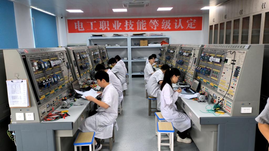 本次認定考核分為理論考核與實操考核,其中實操考核含三個環(huán)節(jié),依據(jù)國家職業(yè)技能標準、職業(yè)技能等級認定規(guī)范,充分考察考生的繼電器控制電路裝調(diào)維修、電器設(shè)備(裝調(diào))裝調(diào)維修、可編程控制系統(tǒng)分析與變頻器調(diào)試維修、應(yīng)用電子電路調(diào)試維修等綜合能力。