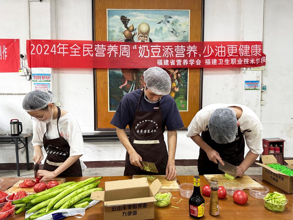為貫徹落實(shí)《健康中國(guó)行動(dòng)(2019-2030年)》和《國(guó)民營(yíng)養(yǎng)計(jì)劃(2017-2030年)》,推廣普及《中國(guó)居民膳食指南(2022)》核心信息,公共衛(wèi)生與健康管理學(xué)院醫(yī)學(xué)營(yíng)養(yǎng)教研室與第二黨支部帶領(lǐng)黨員教師、醫(yī)學(xué)營(yíng)養(yǎng)專業(yè)學(xué)生,聯(lián)合福建省營(yíng)養(yǎng)師協(xié)會(huì)、福建長(zhǎng)富乳品有限公司共同開展?fàn)I養(yǎng)宣教系列活動(dòng),圍繞2024年全民營(yíng)養(yǎng)周暨“5·20”中國(guó)學(xué)生營(yíng)養(yǎng)日“奶豆添營(yíng)養(yǎng),少油更健康”主題,倡導(dǎo)減油、增豆、加奶的營(yíng)養(yǎng)理念。