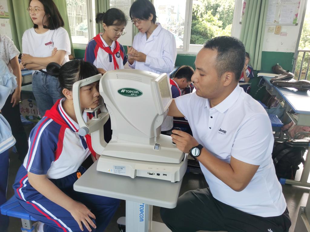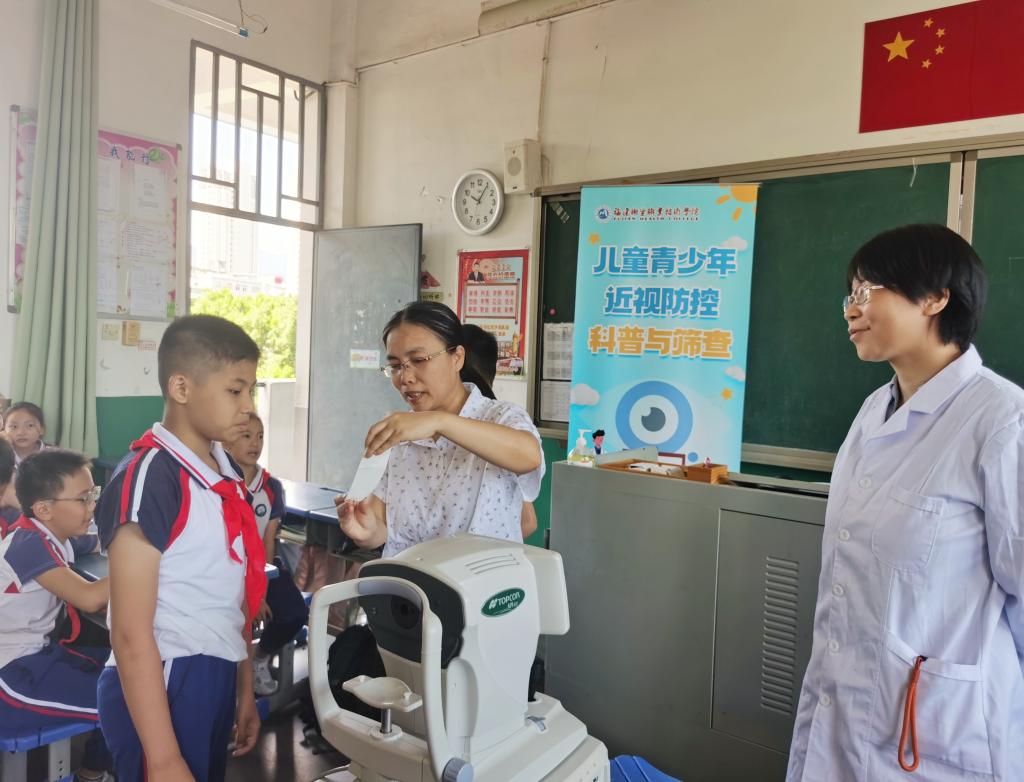 醫(yī)工學院的王珊珊教授則帶領(lǐng)眼視光專業(yè)老師為孩子們進行近視篩查。老師們攜帶專業(yè)設(shè)備,逐一為孩子們進行驗光,并向每個孩子耐心講解驗光結(jié)果,告訴他們良好的視力對于提高學習效率至關(guān)重要,呼吁家長和孩子們重視青少年近視問題,做到早預(yù)防、早發(fā)現(xiàn)、早干預(yù)。