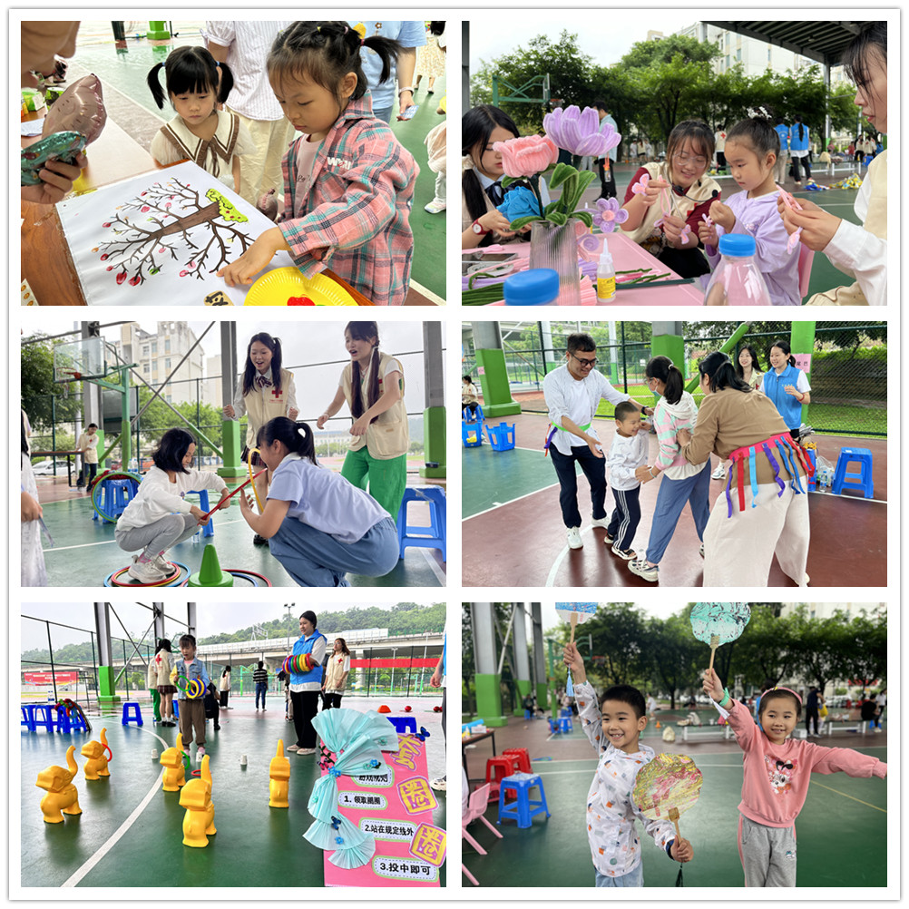 孩子們精彩的開場(chǎng)表演贏得了在場(chǎng)人員的連連稱贊,將現(xiàn)場(chǎng)氛圍帶入佳境。隨后的游園環(huán)節(jié),師生們精心設(shè)置的扭扭棒手工、漂漆扇子DIY、拉力繩貼貼紙等二十余項(xiàng)融入感統(tǒng)訓(xùn)練方法和技巧的趣味游戲,更是讓活動(dòng)現(xiàn)場(chǎng)洋溢著家長(zhǎng)孩子們的歡聲笑語。本次活動(dòng)有效提升了同學(xué)們對(duì)兒童行為的觀察能力和溝通能力,也豐富了教職工們的校園文化活動(dòng),進(jìn)一步營(yíng)造了溫馨和諧的校園氛圍。
