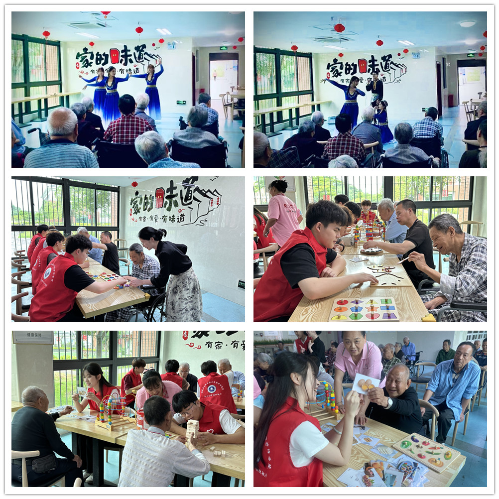 活動(dòng)伊始,由我校新疆維吾爾族學(xué)生組成的歌舞團(tuán)隊(duì),為長(zhǎng)者們獻(xiàn)上了一場(chǎng)精彩的民族舞蹈表演。同學(xué)們與長(zhǎng)者們親切互動(dòng),進(jìn)行水果卡片、繞珠、抓手指等一系列認(rèn)知訓(xùn)練小游戲,既鍛煉了長(zhǎng)者們的反應(yīng)能力,又增進(jìn)了學(xué)生們對(duì)老年人需求的認(rèn)知與關(guān)愛之情,在實(shí)踐中豐富所學(xué),在學(xué)習(xí)中促進(jìn)成長(zhǎng)。